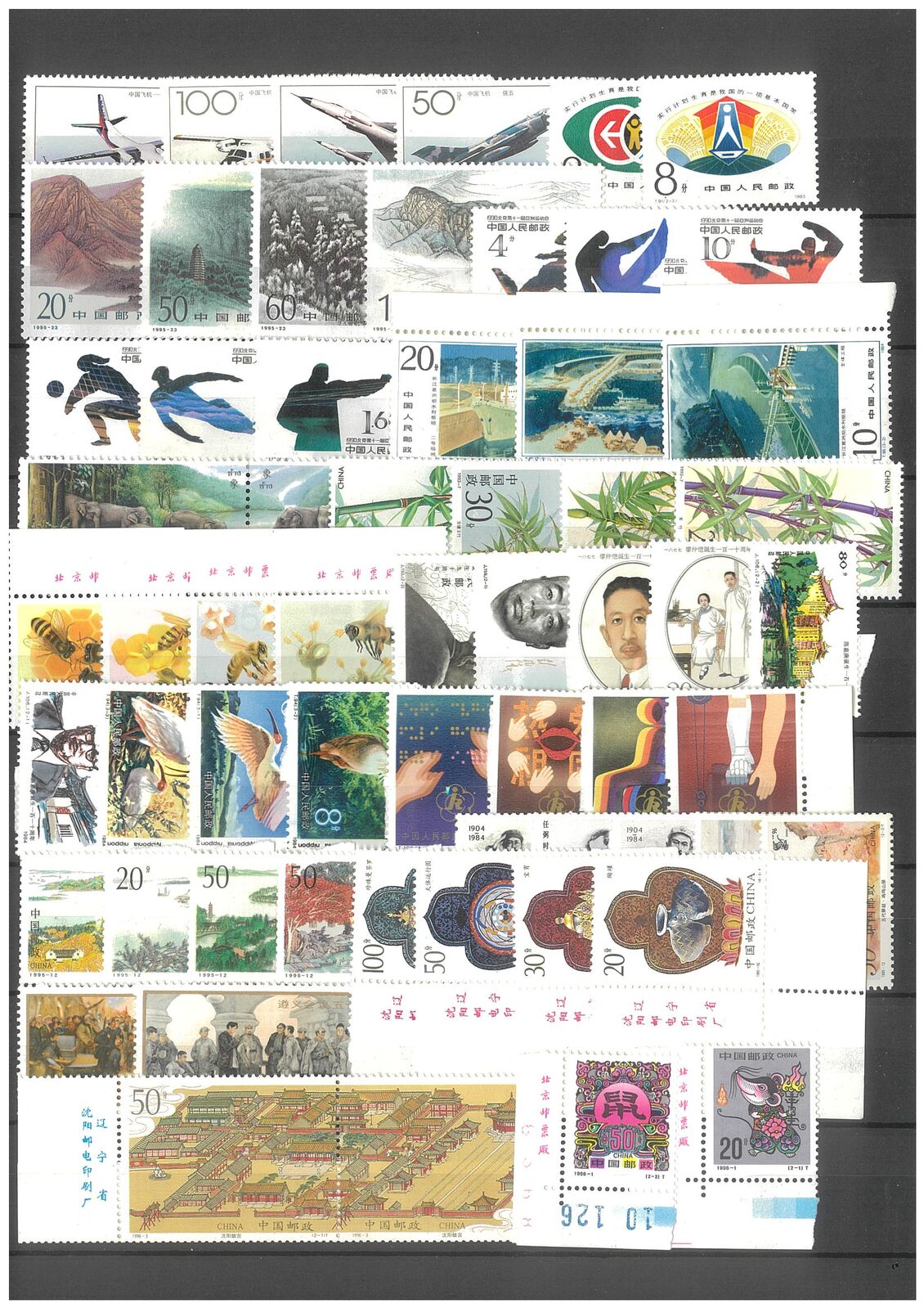 China Selection of 62 Different Stamps Mint Unhinged 5-10