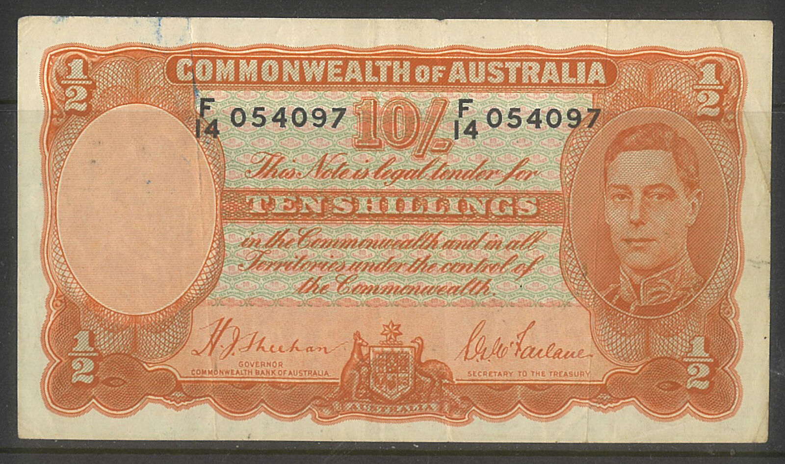 Commonwealth of Australia 1939 Ten Shillings Banknote Sheehan/Macfarlane R12 Fine #P-18