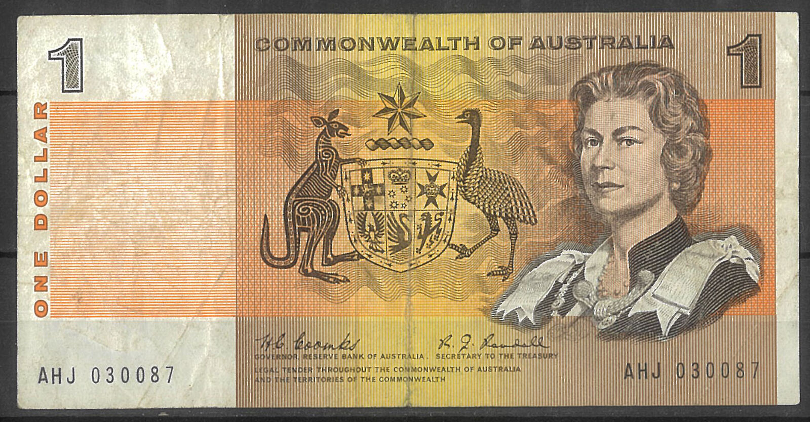 Commonwealth of Australia 1968 $1 Banknote Coombs/Randall R72 gVG/aF #1-12