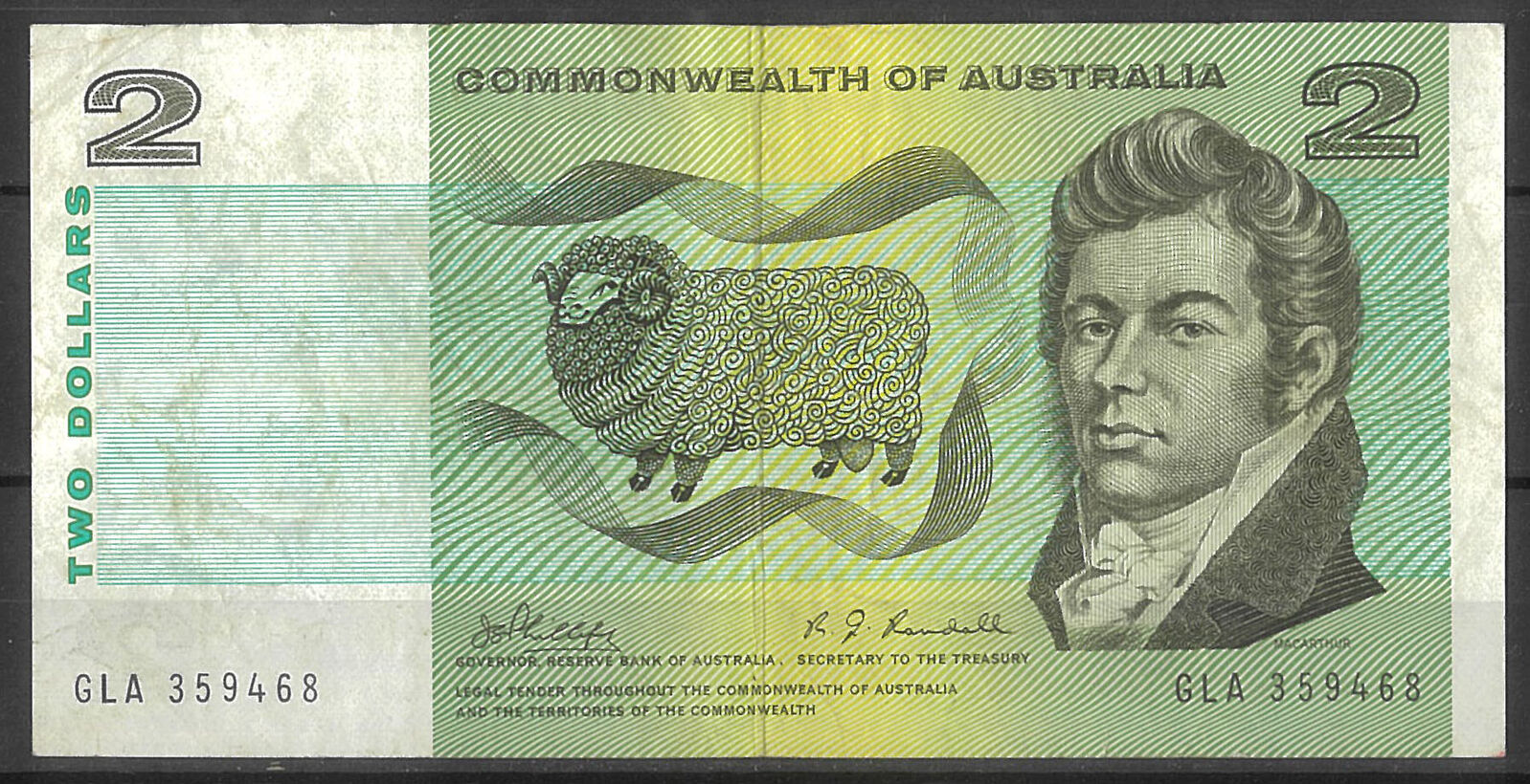 Commonwealth of Australia 1968 $2 Banknote Phillips/Randall R83 gF/aVF #2-43