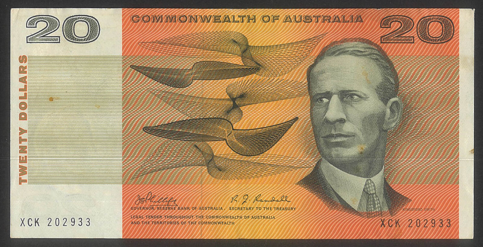 Commonwealth of Australia 1968 $20 Banknote Phillips/Randall R403 Fine (stain) #20-36