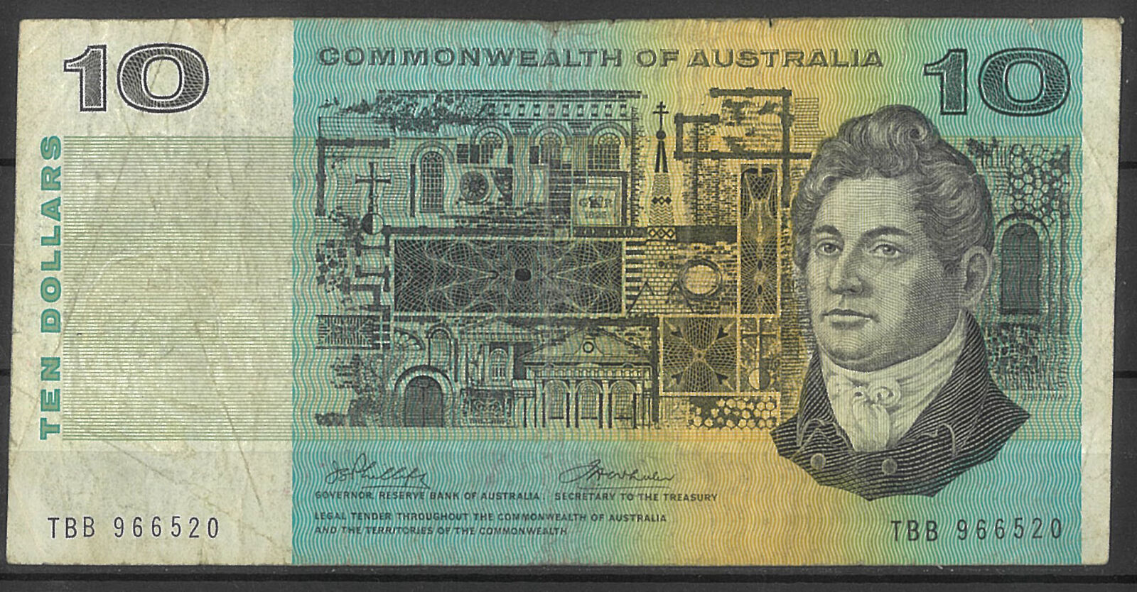 Commonwealth of Australia 1972 $10 Banknote Phillips/Wheeler Last Prefix TBB R304L gVG/aF #4-62