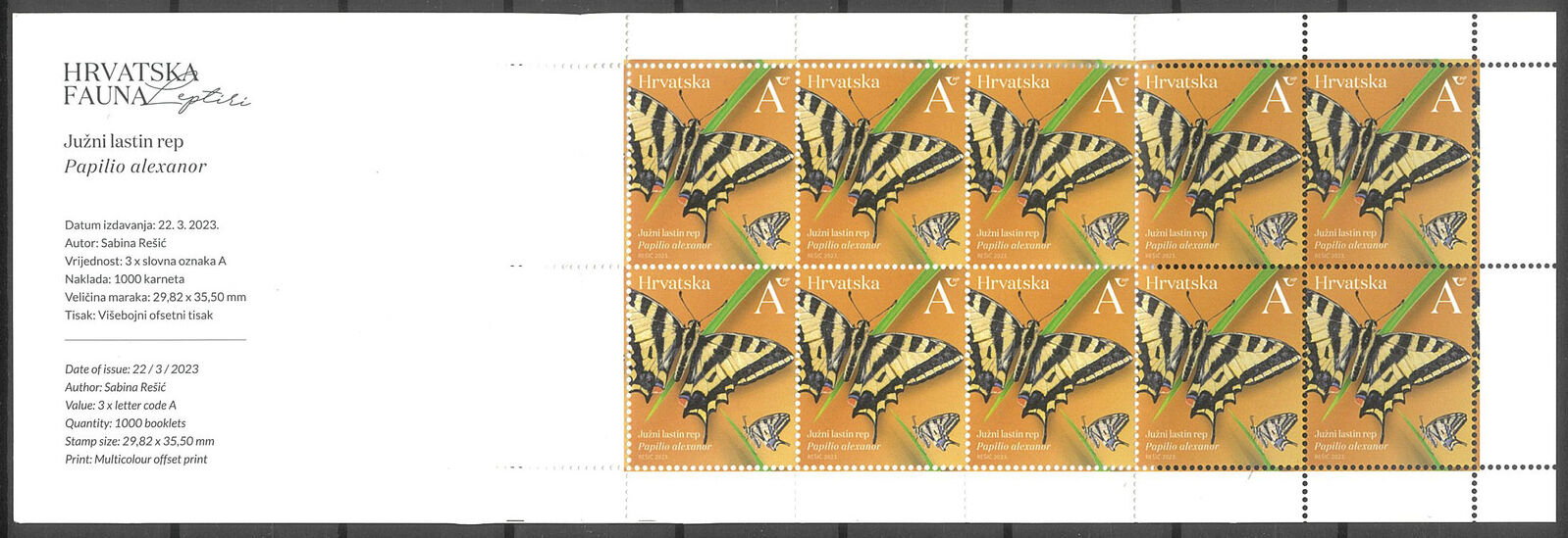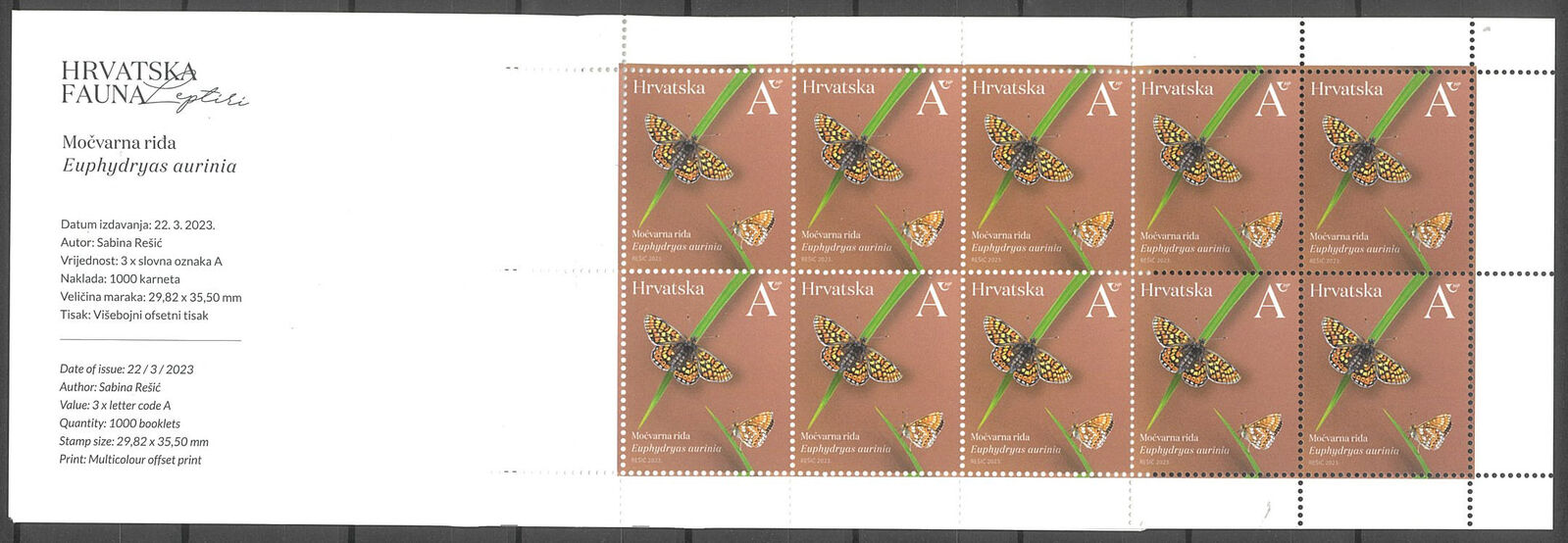 Croatia 2023 Butterflies Set of 3 Booklets (30 stamps) MUH