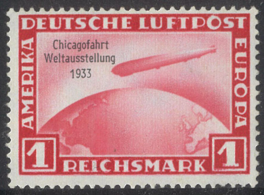 Germany 1933 Zeppelin Chicago Flight 1rm Scott C43 Michel 496 MUH (light bend), Michel catalogue value Euro 3600