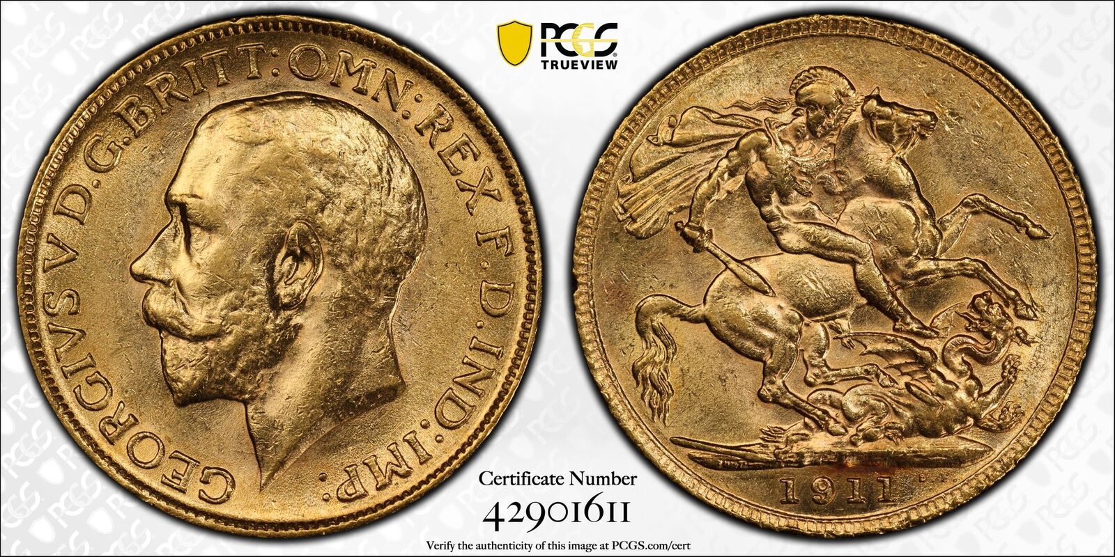 Great Britain 1911 Sovereign Gold Coin S-3996 PCGS MS61