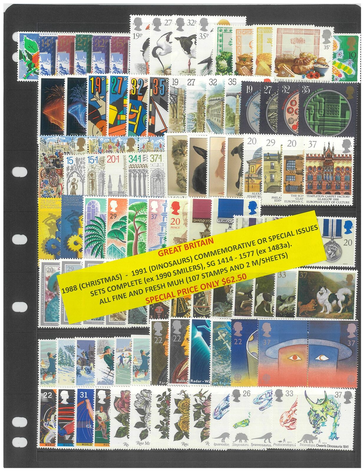Great Britain 1988-91 Commemorative Sets Complete, excl. 1990 Smilers, SG 1414-1577 (ex 1483a). 107 Stamps & 2 Mini Sheets MUH #429