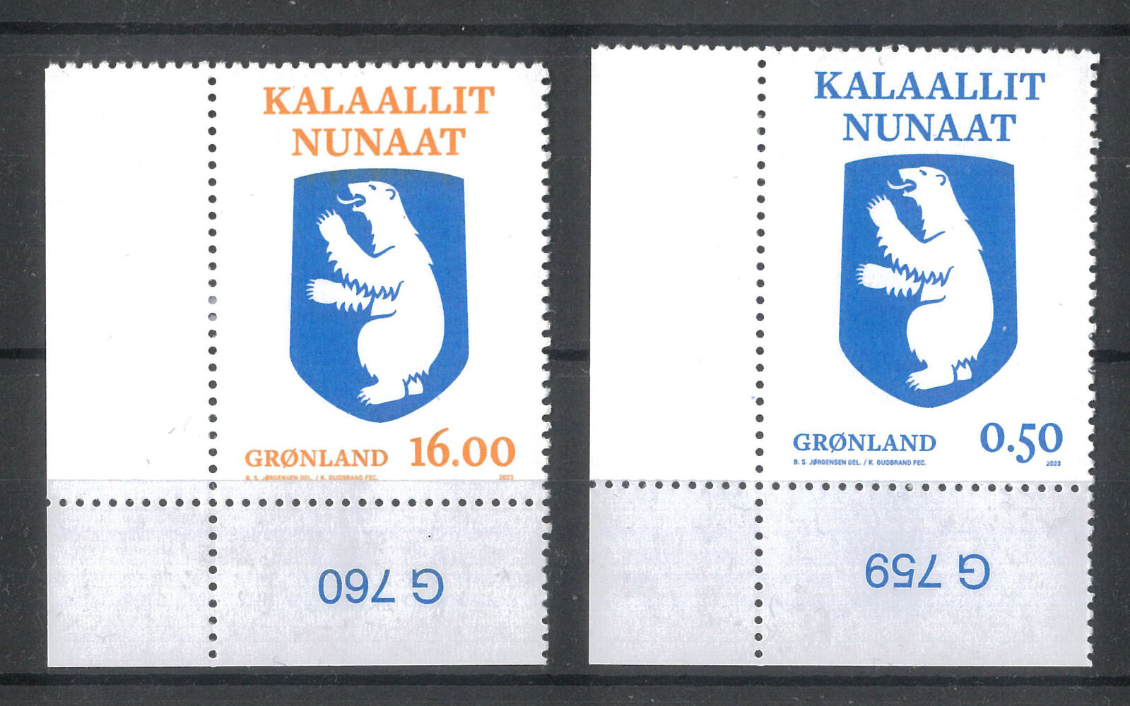 Greenland 2023 Coat of Arms Set of 2 Definitive Stamps Mint Unhinged