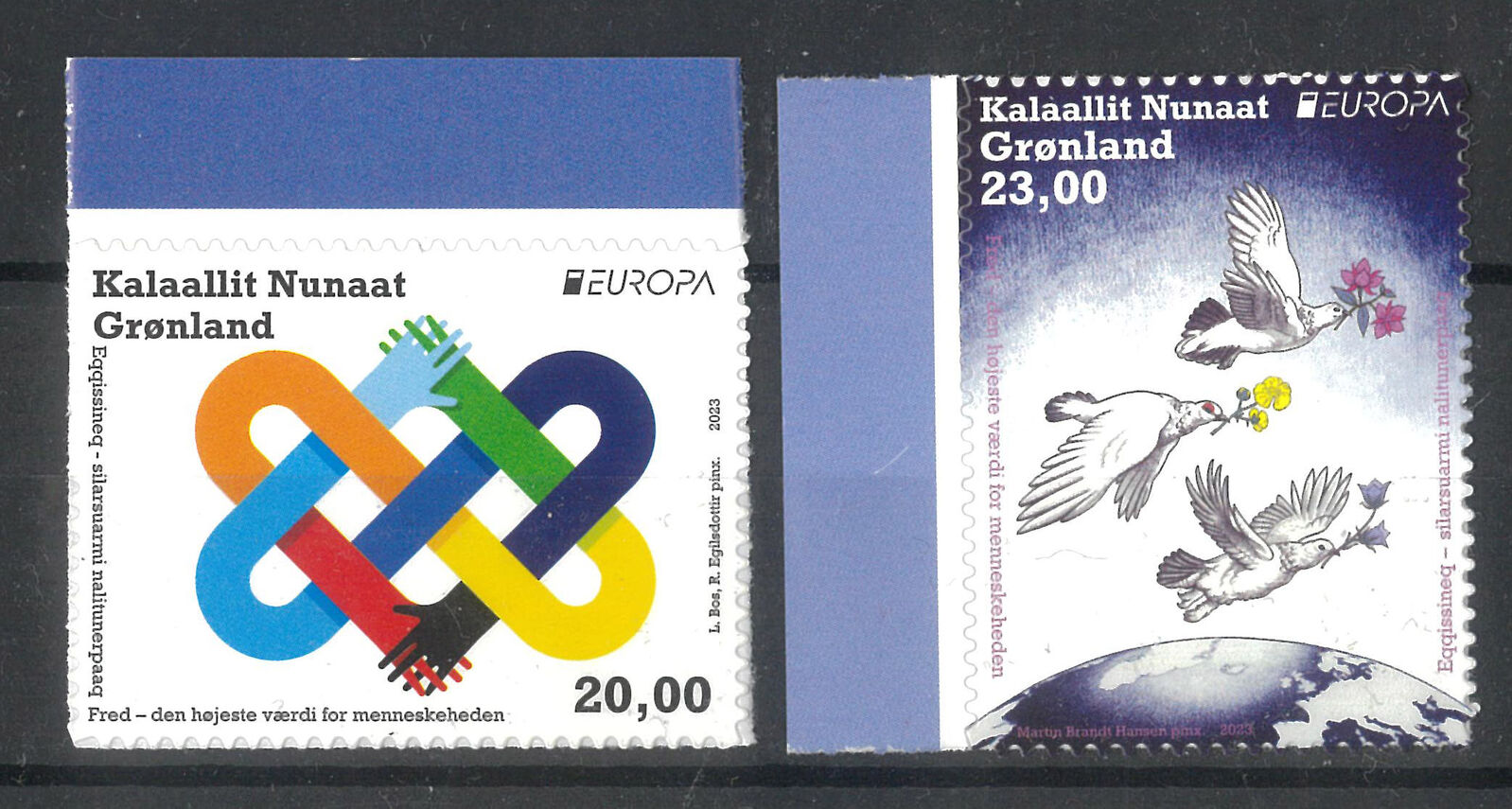 Greenland 2023 EUROPA Peace Set of 2 Self-adhesive Stamps ex-booklet MUH