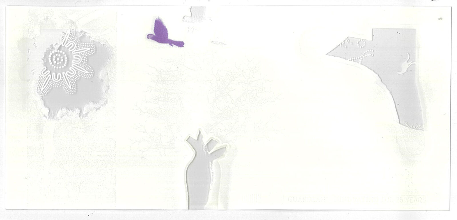 A sophisticated demonstration piece from Guardian, this blank polymer test note showcases the cutting‑edge “Eclipse” security feature—one of the company’s signature innovations in modern banknote protection. Produced as a non‑circulating sample, it highlights the advanced capabilities of Guardian’s polymer substrate and security design technology.