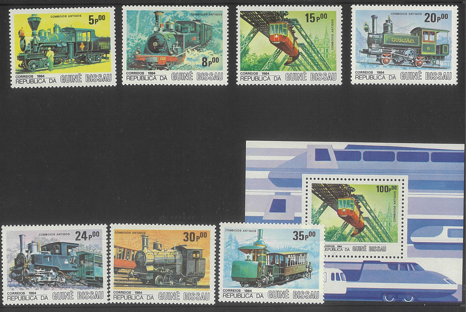 Guinea-Bissau 1984 Trains Set/7 Stamps & Mini Sheet Sc.619/25A MUH 6-1