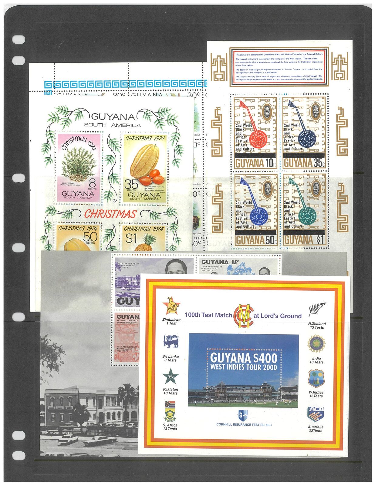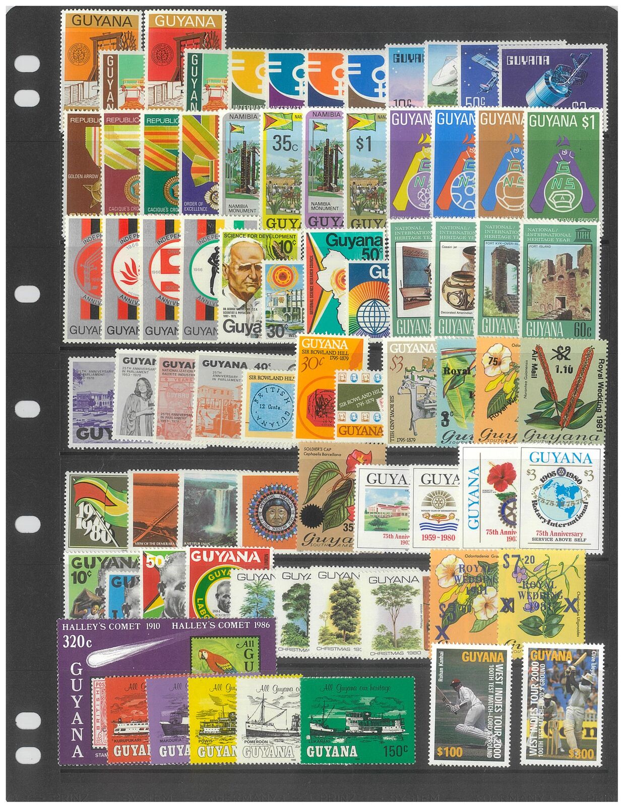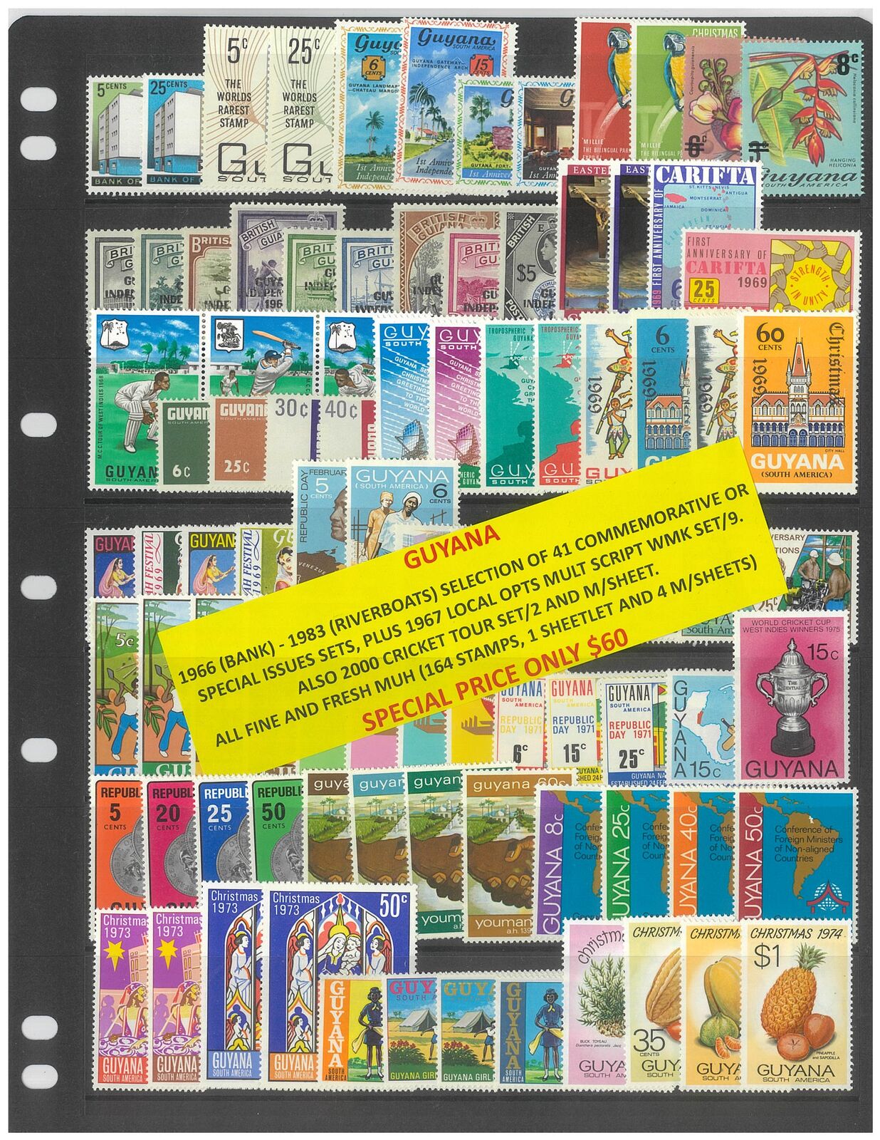 Guyana 1966 (Bank) - 1983 (Riverboats) Selection of 41 Commemorative Sets, plus 1967 local overprints multi script watermark set of 9, also 2000 Cricket Tour set os 2 and mini sheet. 164 Stamps & 5 Sheets MUH #490