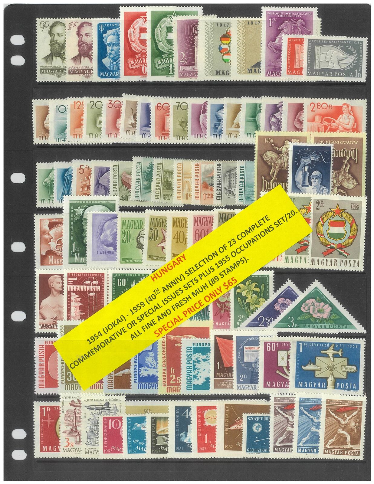 Hungary 1954-59 Selection of 23 Complete Commemorative Sets, plus 1955 Occupations set of 20. 89 Stamps MUH #434