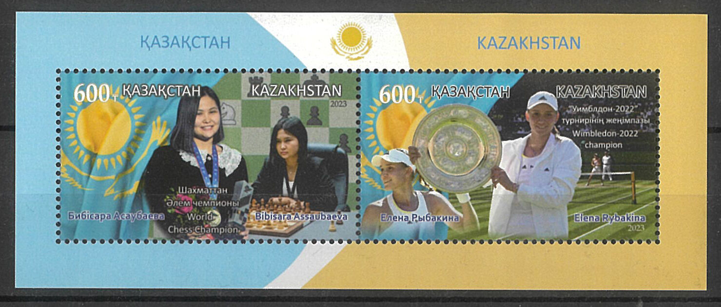 Kazakhstan 2023 Sports Champions Chess & Tennis Mini Sheet MUH