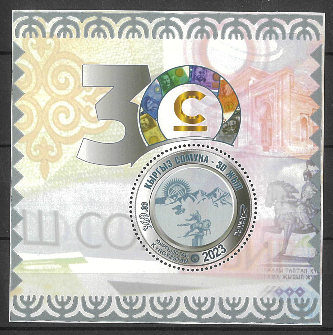 Kyrgyzstan 2023 Currency Kyrgyz Som 30 Years Mini Sheet MUH