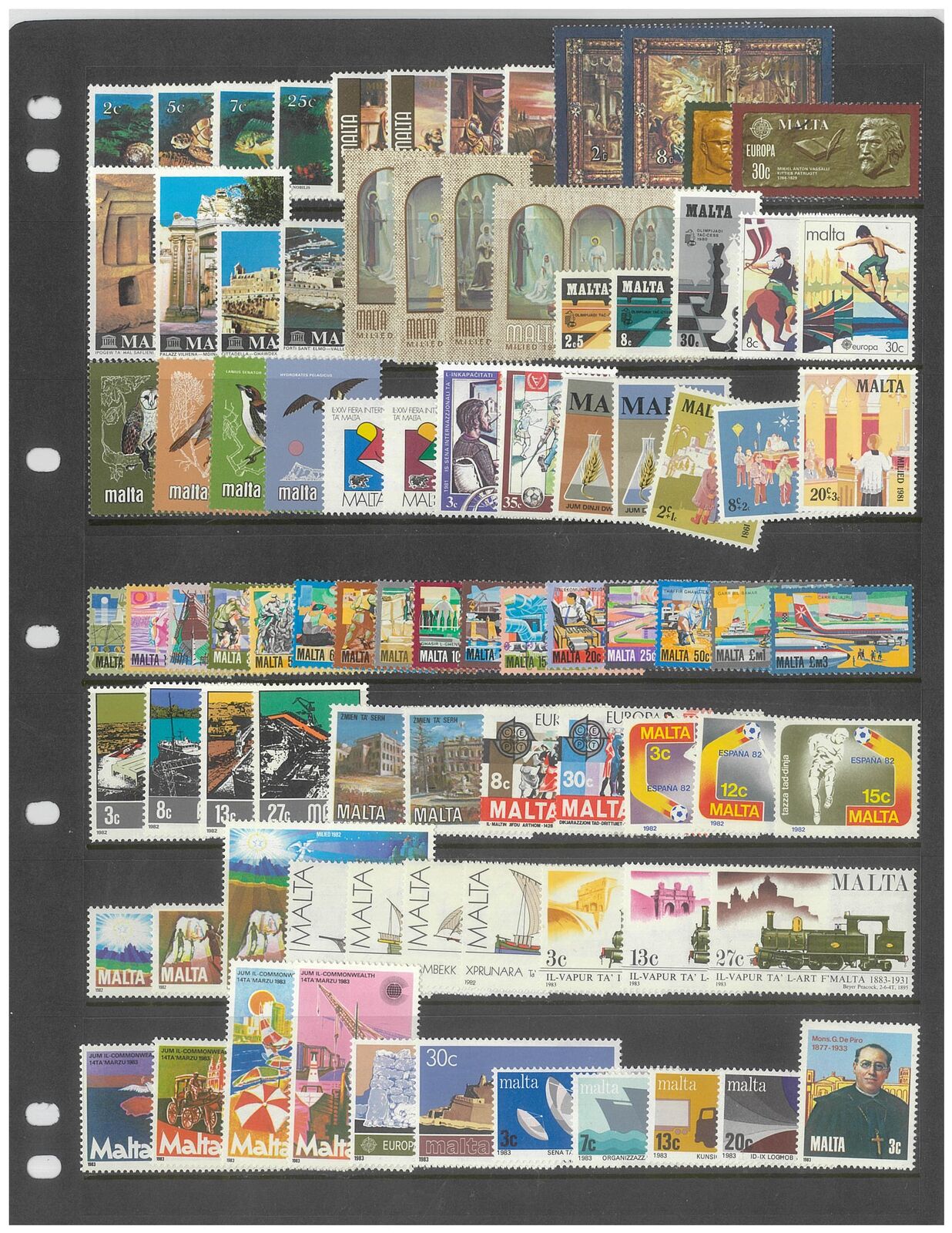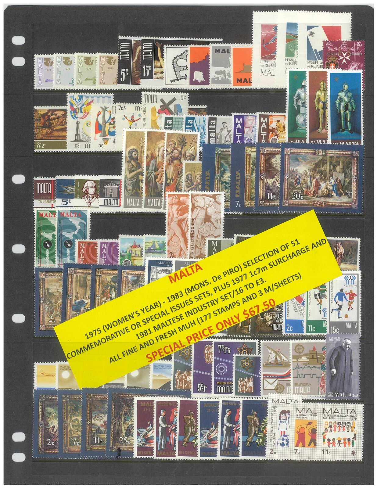 Malta 1975 (Women's Year) - 1983 (Mons. De Piro) Selection of 51 Commemorative Sets, plus 1977 1c7m Surcharge and 1981 Maltese Industry set of 16. 177 Stamps & 3 Mini Sheets MUH #284