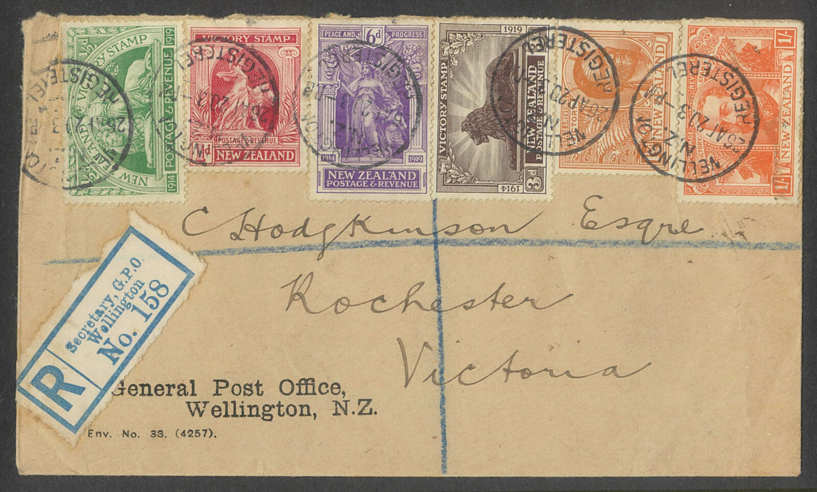 New Zealand 1920 Registered Cover to Australia Franked Victory Set/6 Stamps