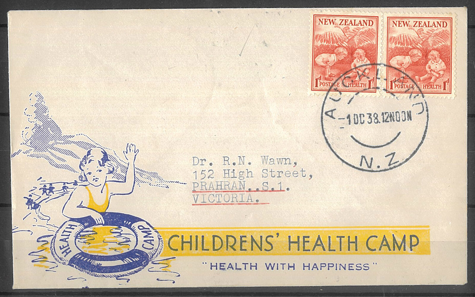 New Zealand 1938 Health Stamps on First Day Cover tied by "Large Auckland CDS of 1 Oc 38"