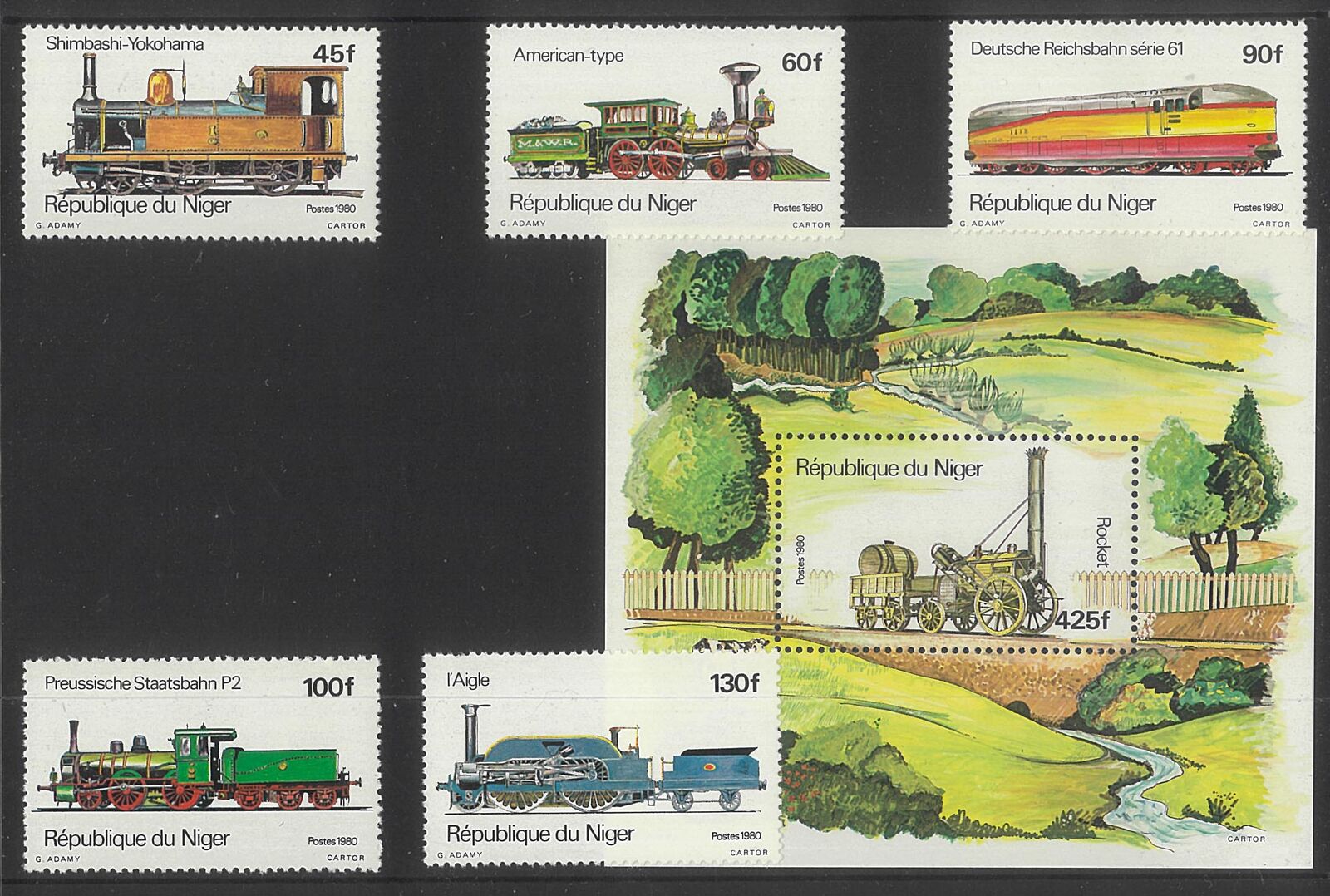 Niger 1980 Trains Set/5 Stamps & Mini Sheet Scott 514/19 MUH 6-1