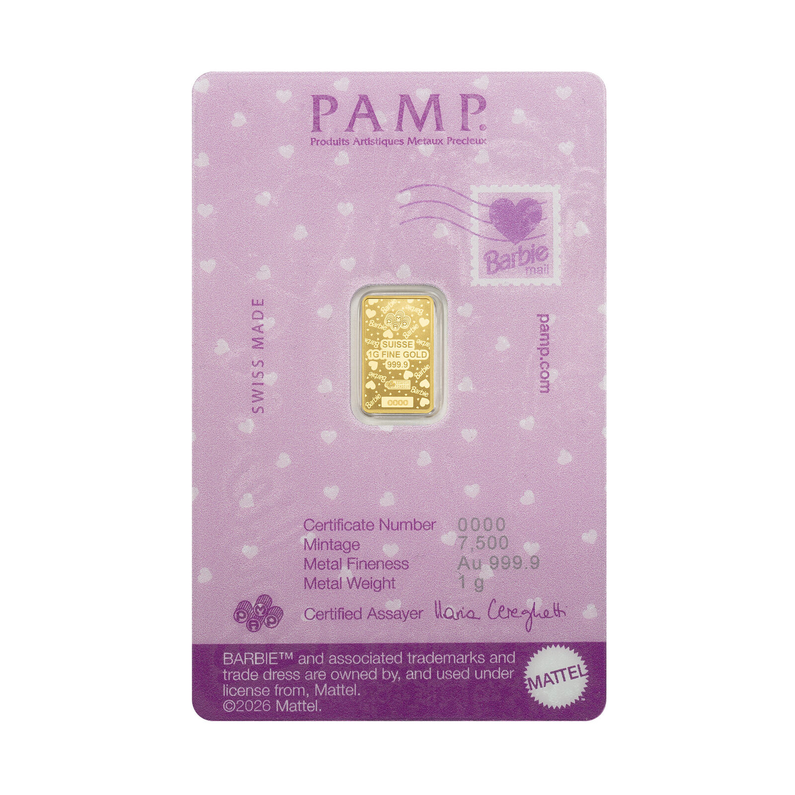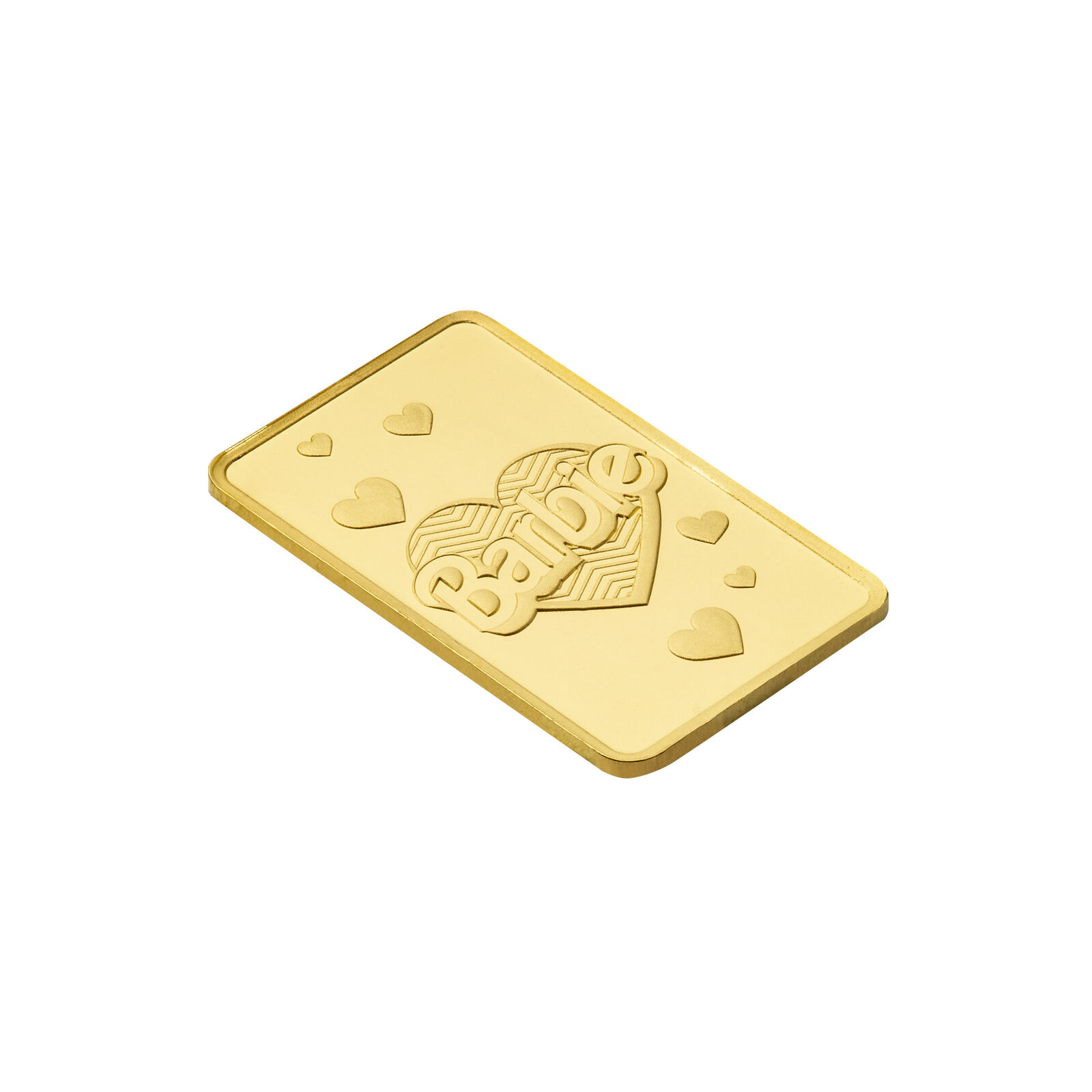 On Valentine’s Day, Barbie radiates charm and elegance, celebrating love in her signature style. Whether sharing sweet notes or golden-hued roses, Barbie reminds everyone that love—like gold— is timeless, precious, and meant to be cherished. Celebrate your love with this pure gold bar! Officially licensed by Mattel® and individually serialized, this bar is housed in a vibrant CertiPAMP™ assay card and has a limited mintage of 7,500 pieces.