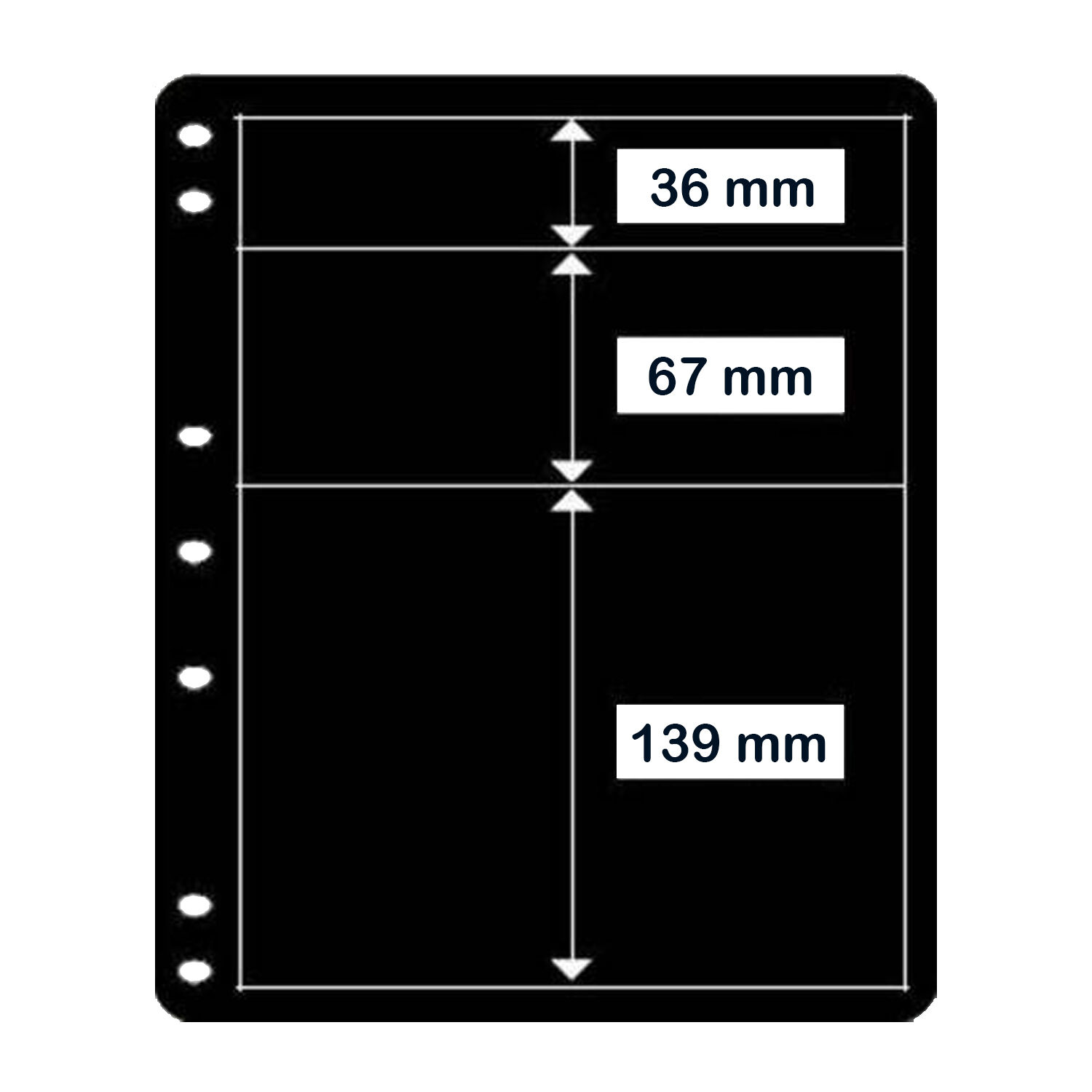 Clear Strip, Black Page, 7-holes punching, Suits Prinz System and Hagner System Binders