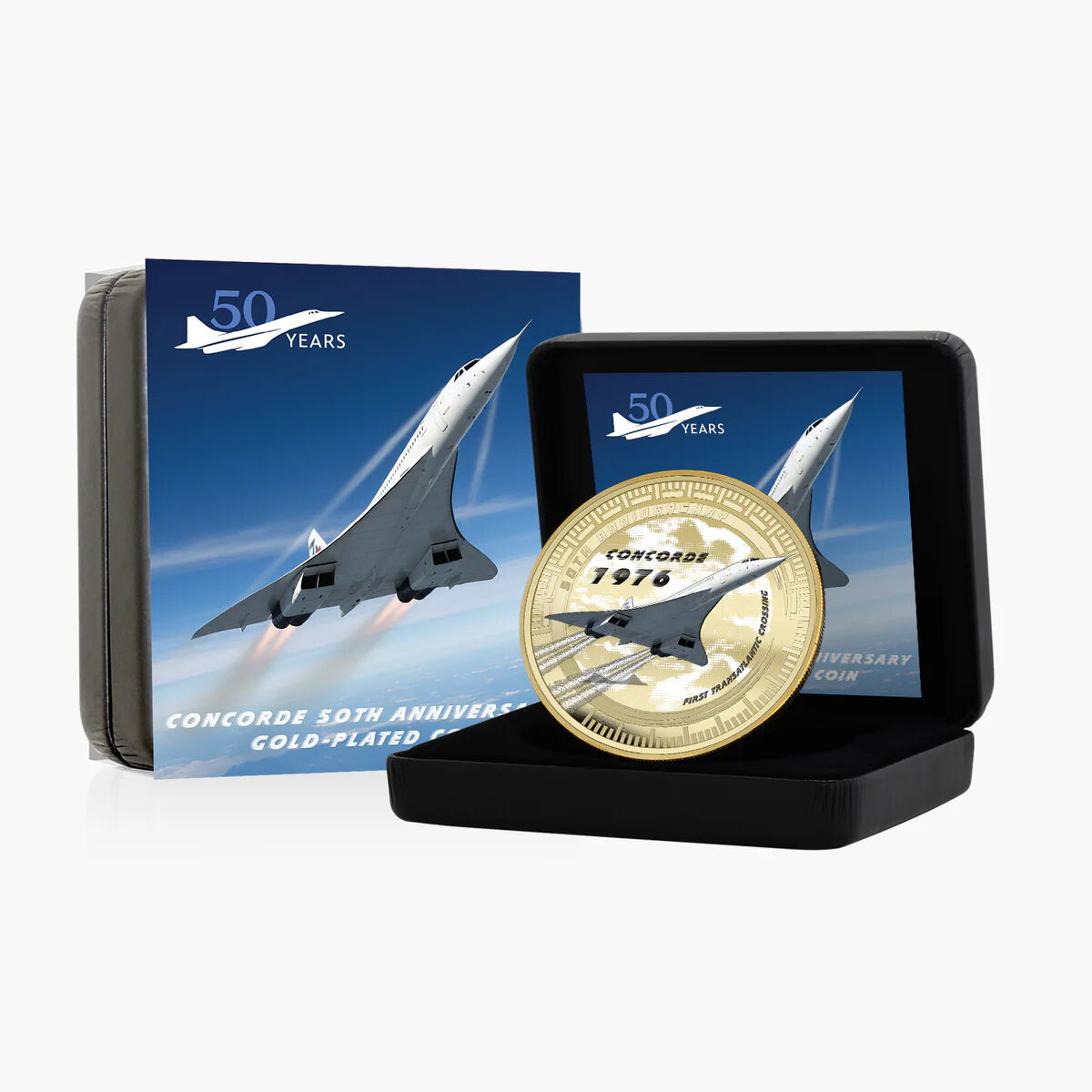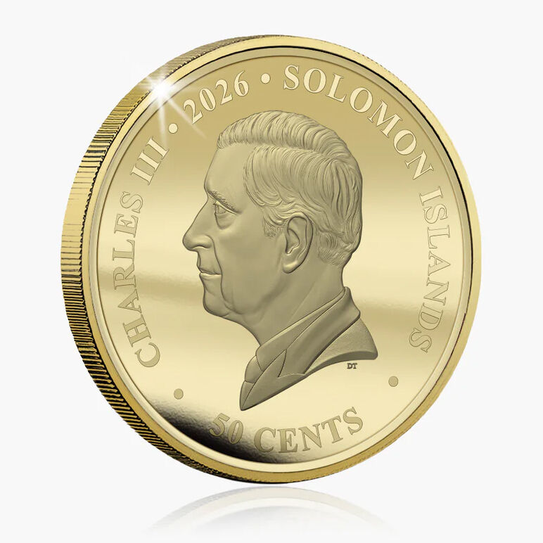 This officially issued 2026 legal tender coin marks the 50th anniversary of Concorde’s historic debut. Struck to a proof-like finish, the 50mm coin is gold plated and enhanced with full colour, featuring Concorde in flight alongside commemorative anniversary detailing. The obverse bears the effigy of King Charles III, confirming its status as legal tender of the Solomon Islands.
