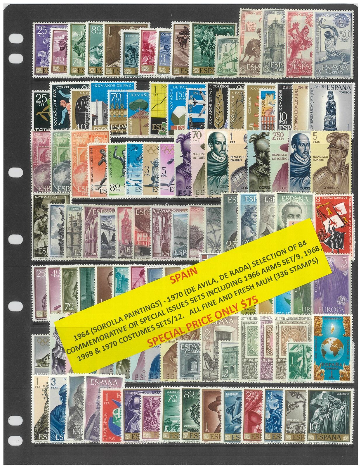 Spain 1964-70 Selection of 84 Commemorative Sets, including 1966 Arms set of 9, 1968 1969 & 1970 Costumes sets of 12. 336 Stamps MUH #449