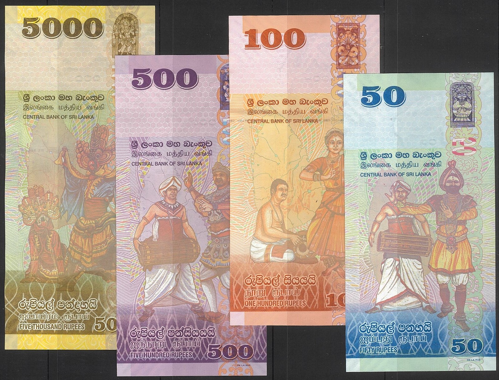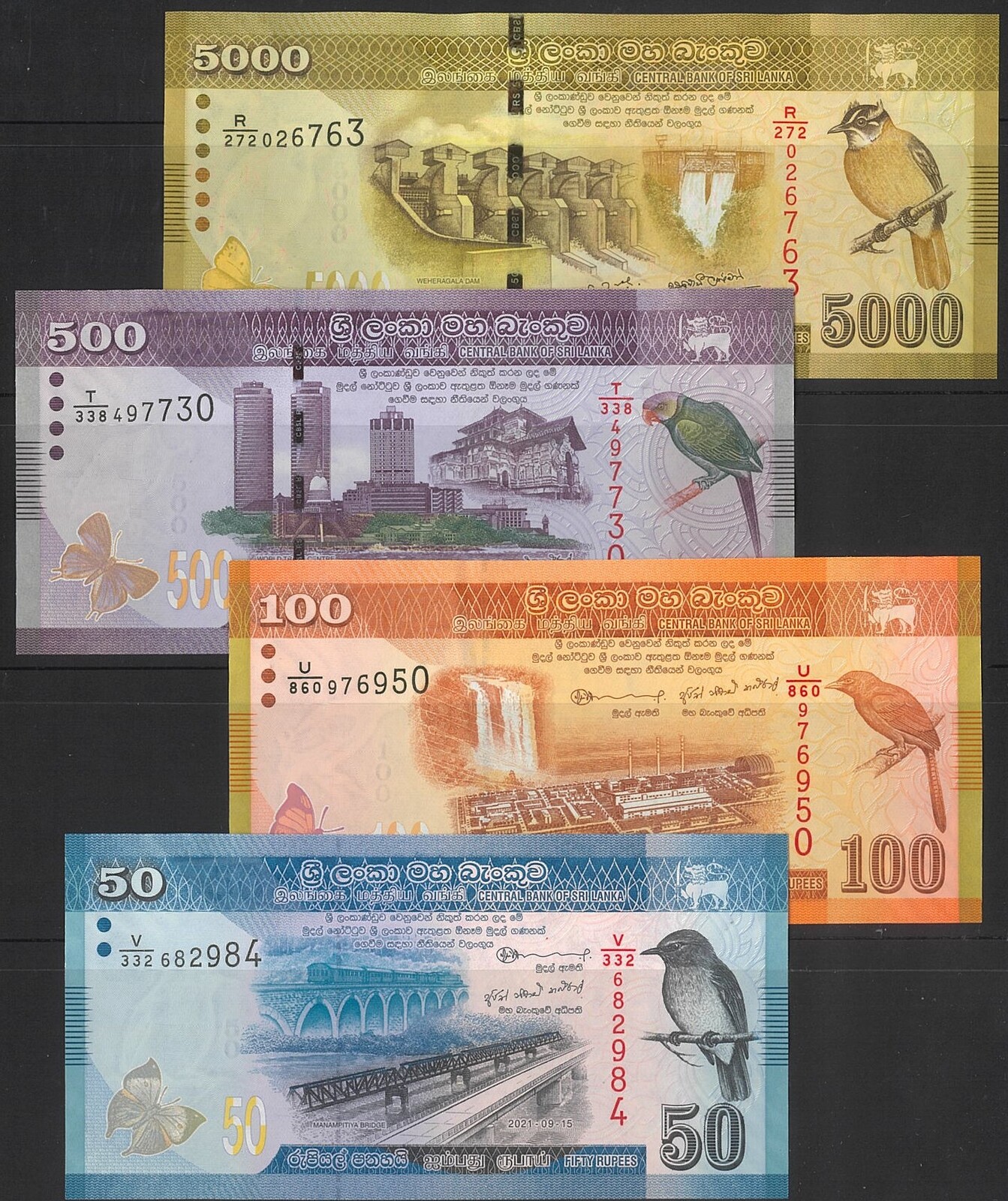 Sri Lanka 2020-21 Group of 4 Banknotes 5000, 500, 100 & 50 Rupees UNC