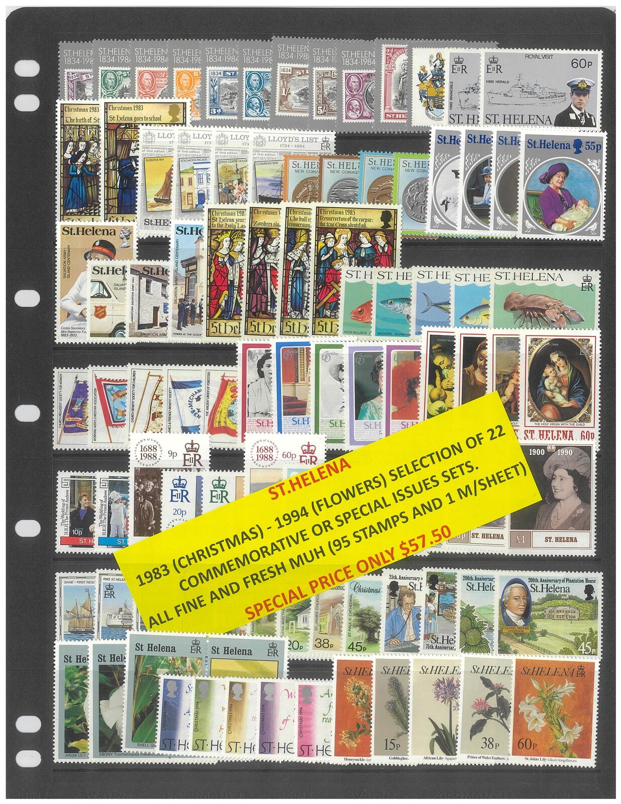 St Helena 1983-94 Selection of 22 Commemorative Sets 95 Stamps & 1 Mini Sheet MUH #474