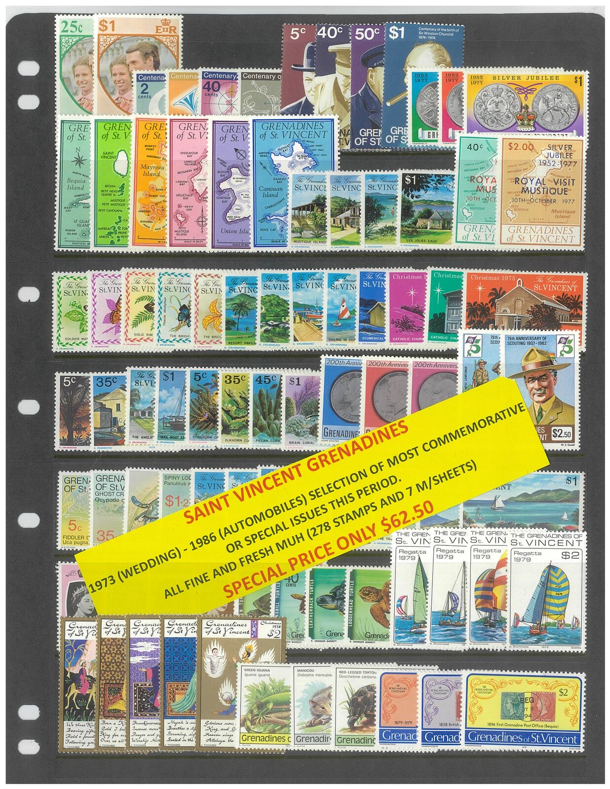 St Vincent Grenadines 1973 (Wedding) - 1986 (Automobiles)Selection of Commemorative Sets 278 Stamps & 7 Mini Sheets MUH #440