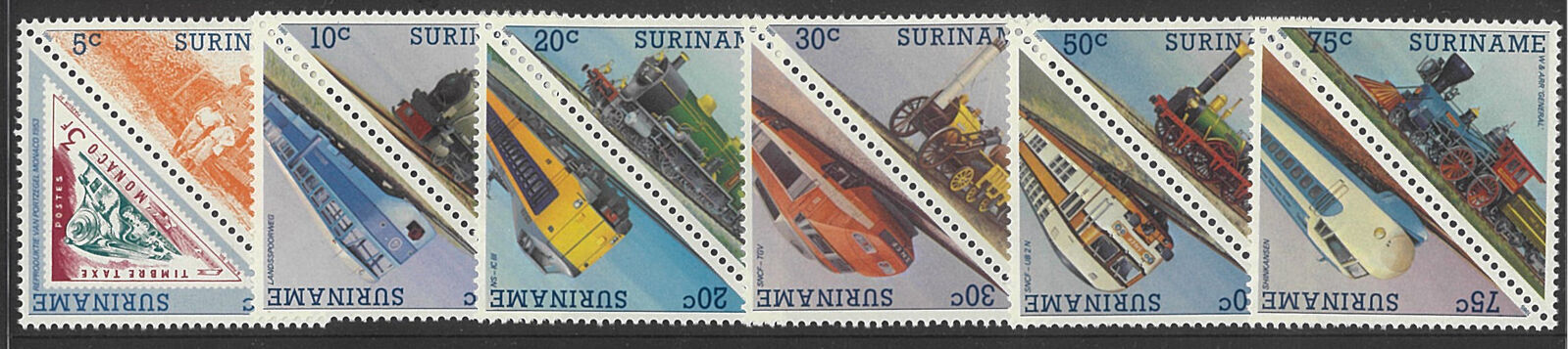 Suriname 1985 Trains Set of 12 Stamps in Pairs Scott 713a/23a MUH 6-1