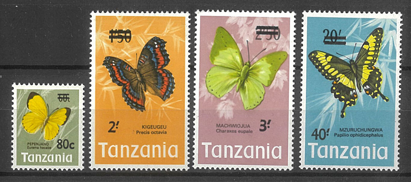 Tanzania 1975 Surcharges on Butterflies Set/4 Stamps SG173/76 MUH #BR406