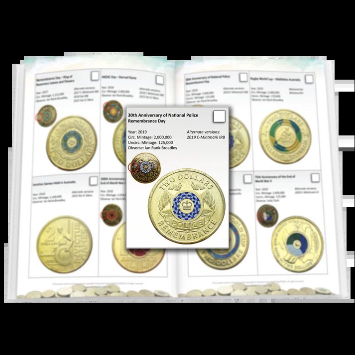 The ‘Pirate Guide to Collecting Australian Coins’ book lists all Australian decimal coins currently in circulation (from 1966 to the end of 2025), including the coloured $2 coins released by various retailers and the $1 sets from Australia Post.