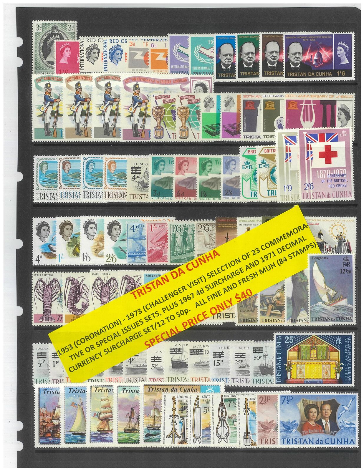Tristan Da Cunha 1953 (Coronation) - 1973 (Challenger Visit) Selection of 23 Commemorative Sets, plus 1967 4d Surcharge and 1971 Decimal Currency Surcharge set of 12. 84 Stamps MUH #283