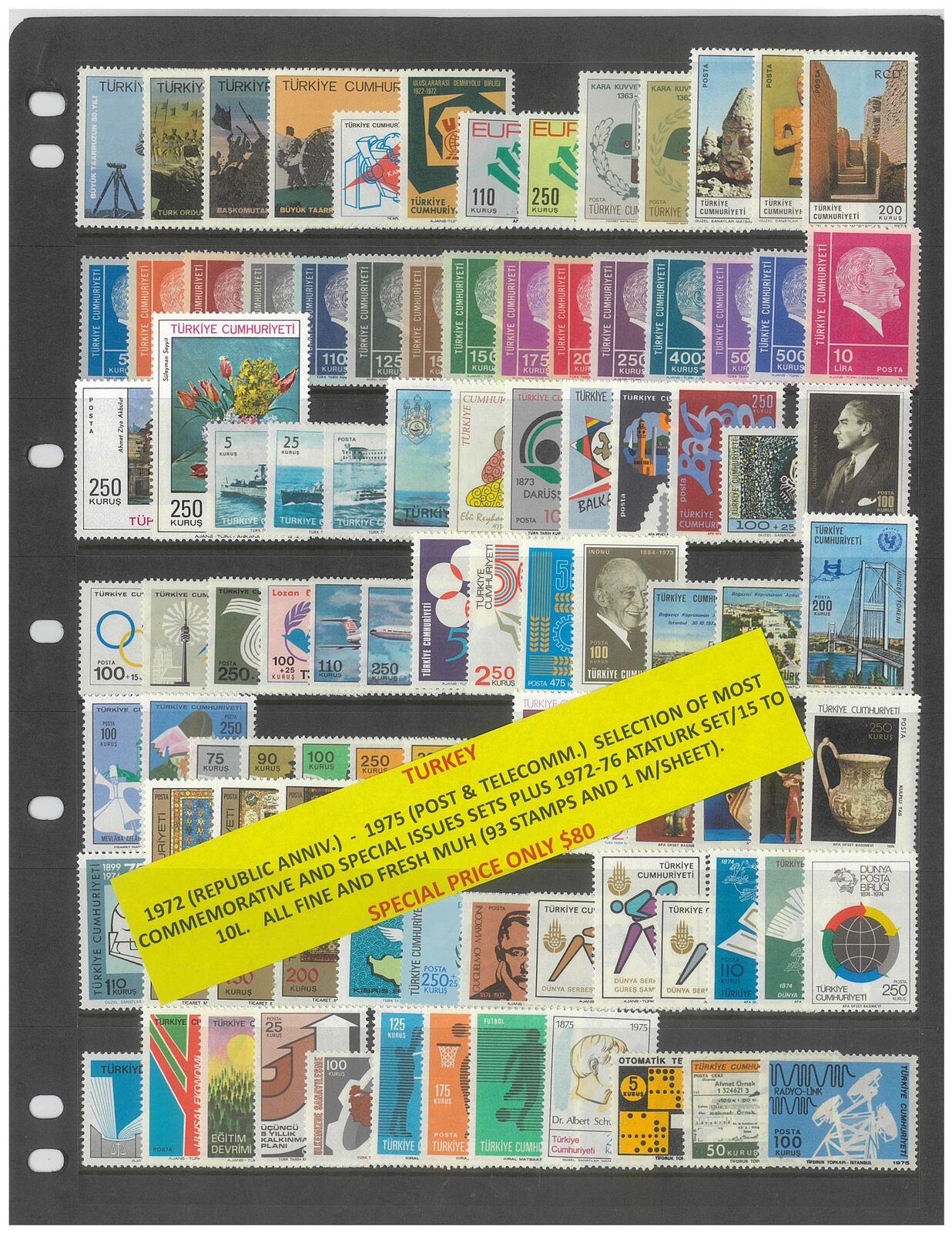 Turkey 1972 (Republic Anniversary) - 1975 (Post & Telecommunication) Selection of Commemorative Sets, plus 1972-76 Ataturk set of 15. 93 Stamps & 1 Mini Sheet MUH #270