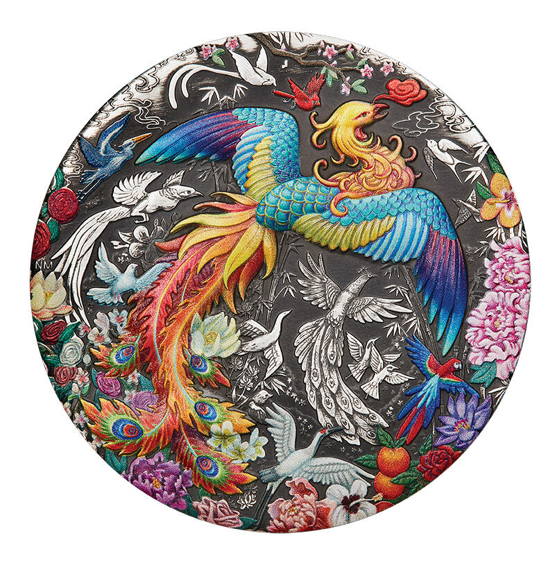 Tuvalu 2023 Phoenix and Birds 5oz Silver Antiqued Coloured $5 Coin