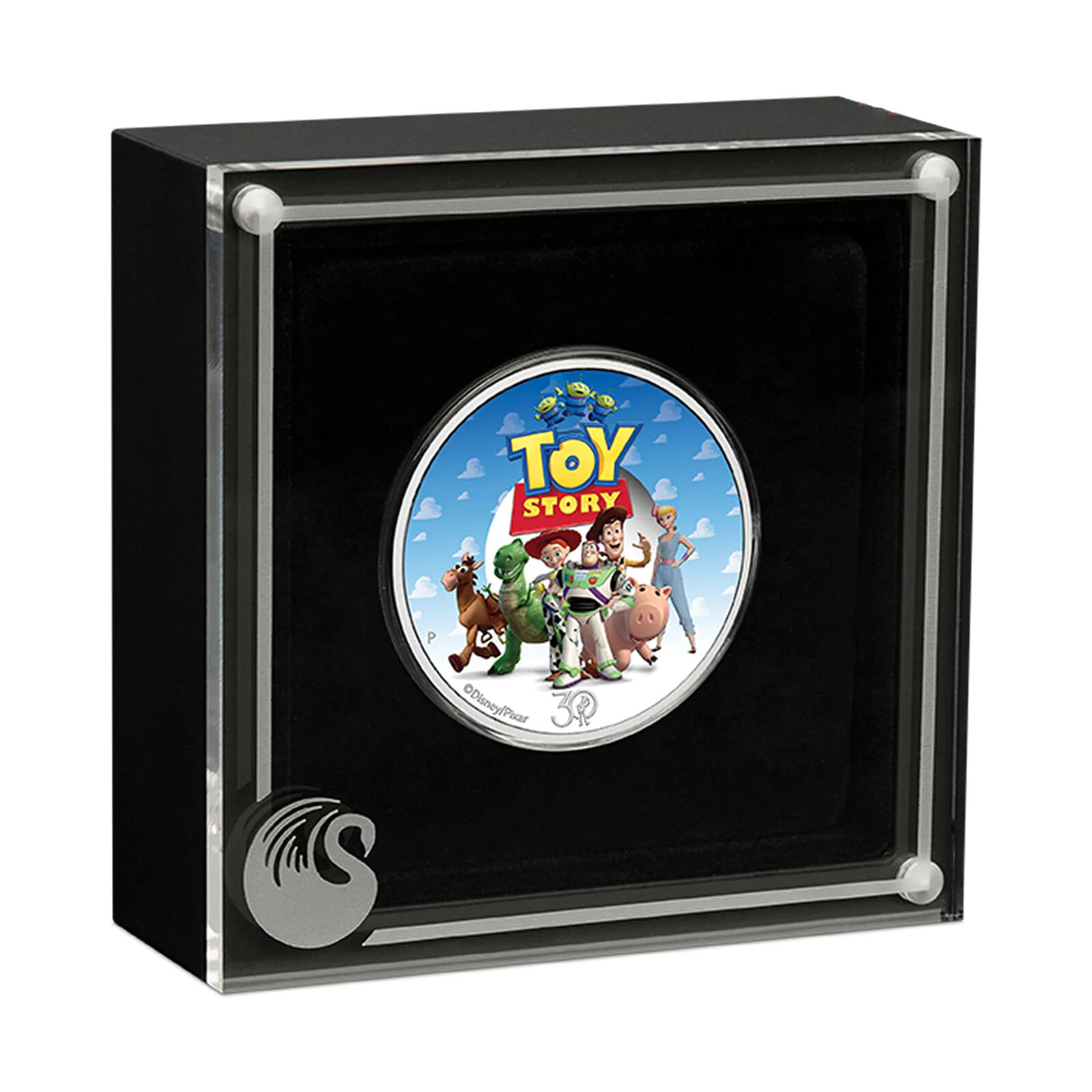 Celebrating the 30th anniversary of the iconic movie Toy Story, The Perth Mint is pleased to present this delightful Toy Story silver proof coloured coin.