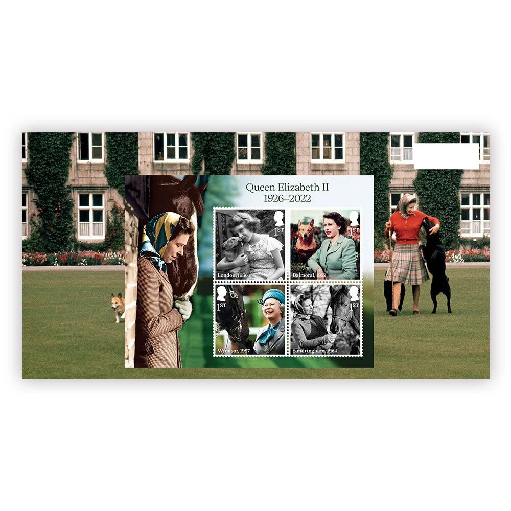 The Miniature Sheet, presented in a separate carrier, includes four First Class stamps celebrating The Queen’s lifelong love of animals.