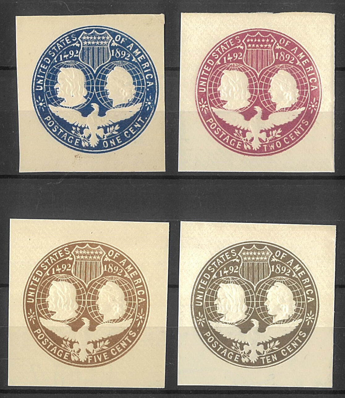 USA 1893 Columbus Set of 4 Postal Stationery Cut-Outs Scott U348/51 MNG #RW
