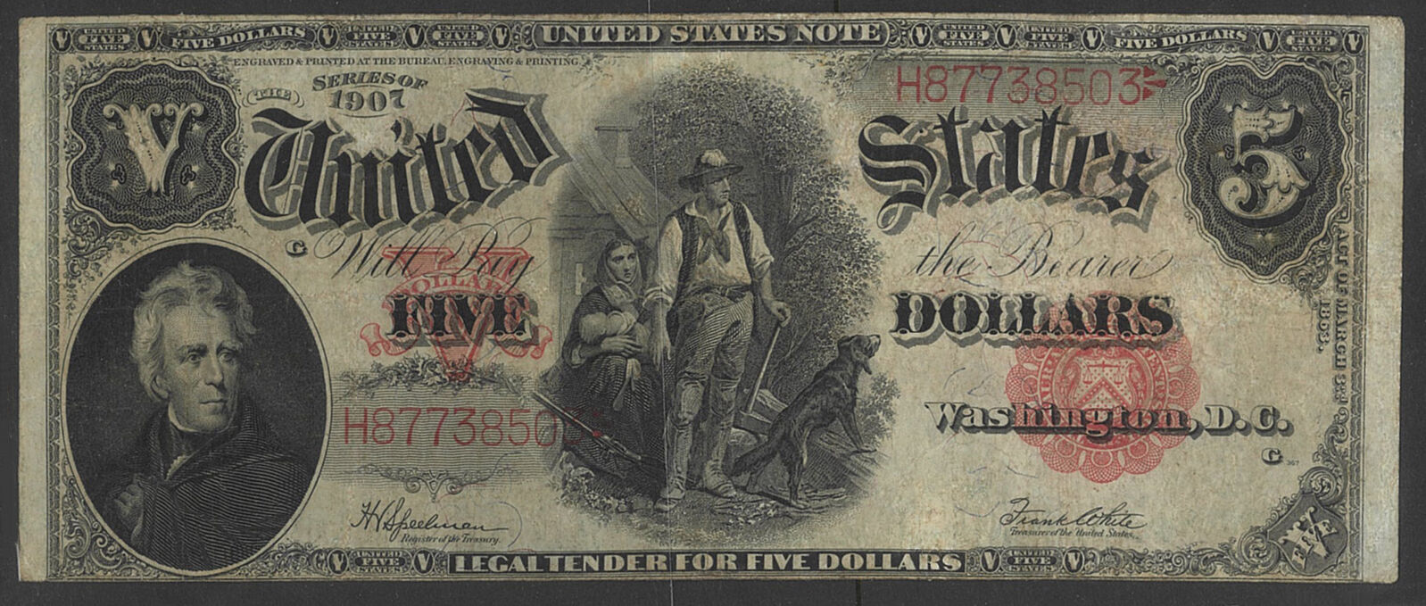 One of the most recognisable and enduring designs in early U.S. currency, the 1907 $5 Legal Tender Note—popularly known as the “Woodchopper”—remains a favourite among collectors for its bold artwork and historical significance. The central vignette depicts a frontier woodcutter with his family, symbolising American resilience and the pioneering spirit of the late 19th century.