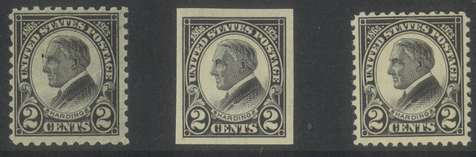 USA 1923 Harding 2c Stamp Black, Perf 11/Imperf/Perf 10, Scott 610/12 MUH #BK99