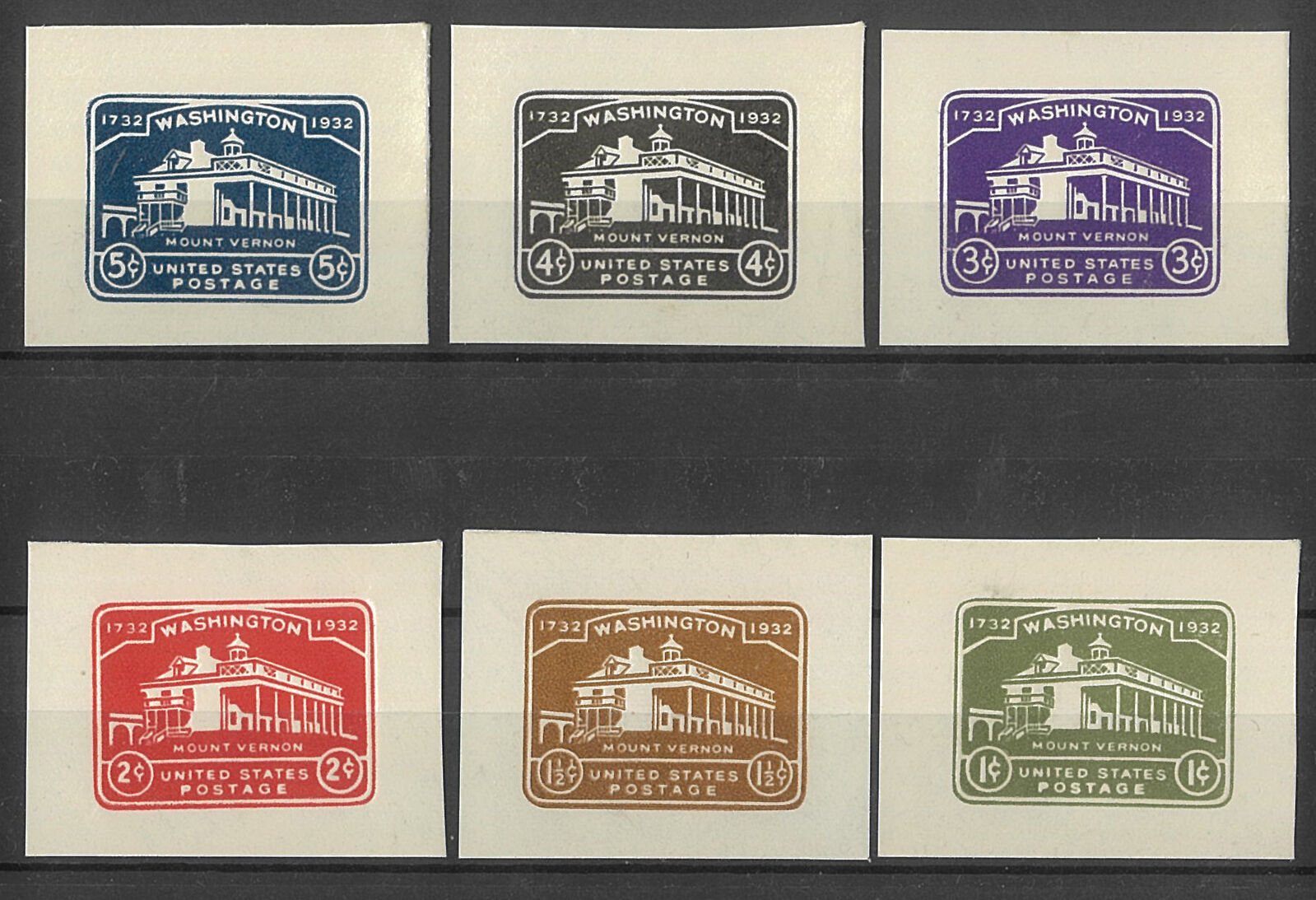 USA 1932 Washington Bicentennial Set/6 Postal Stationery Cut-Outs Scott U523/28 MNG #RW