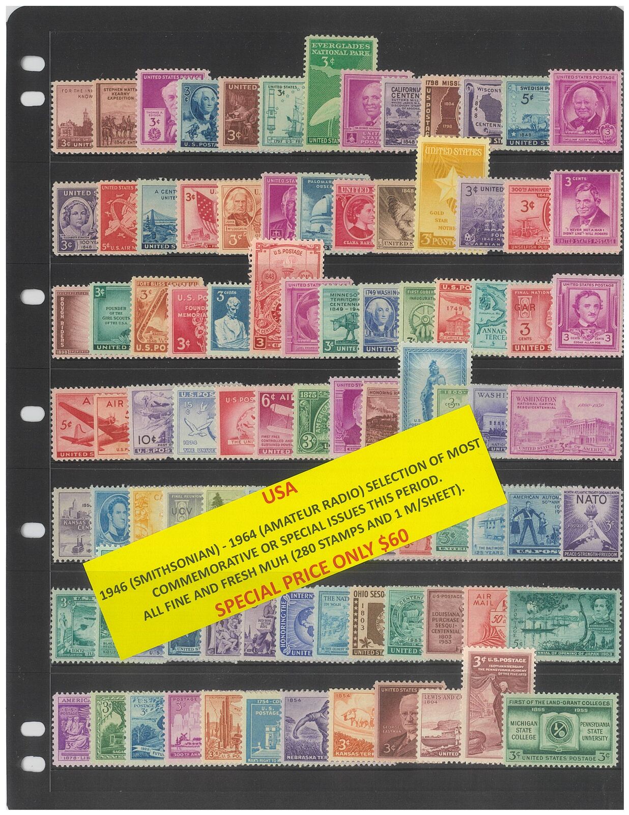 USA 1946( Smithsonian) - 1964 (Amateur Radio) Selection of Most Commemorative Issues 280 Stamps & 1 Mini Sheet MUH #300