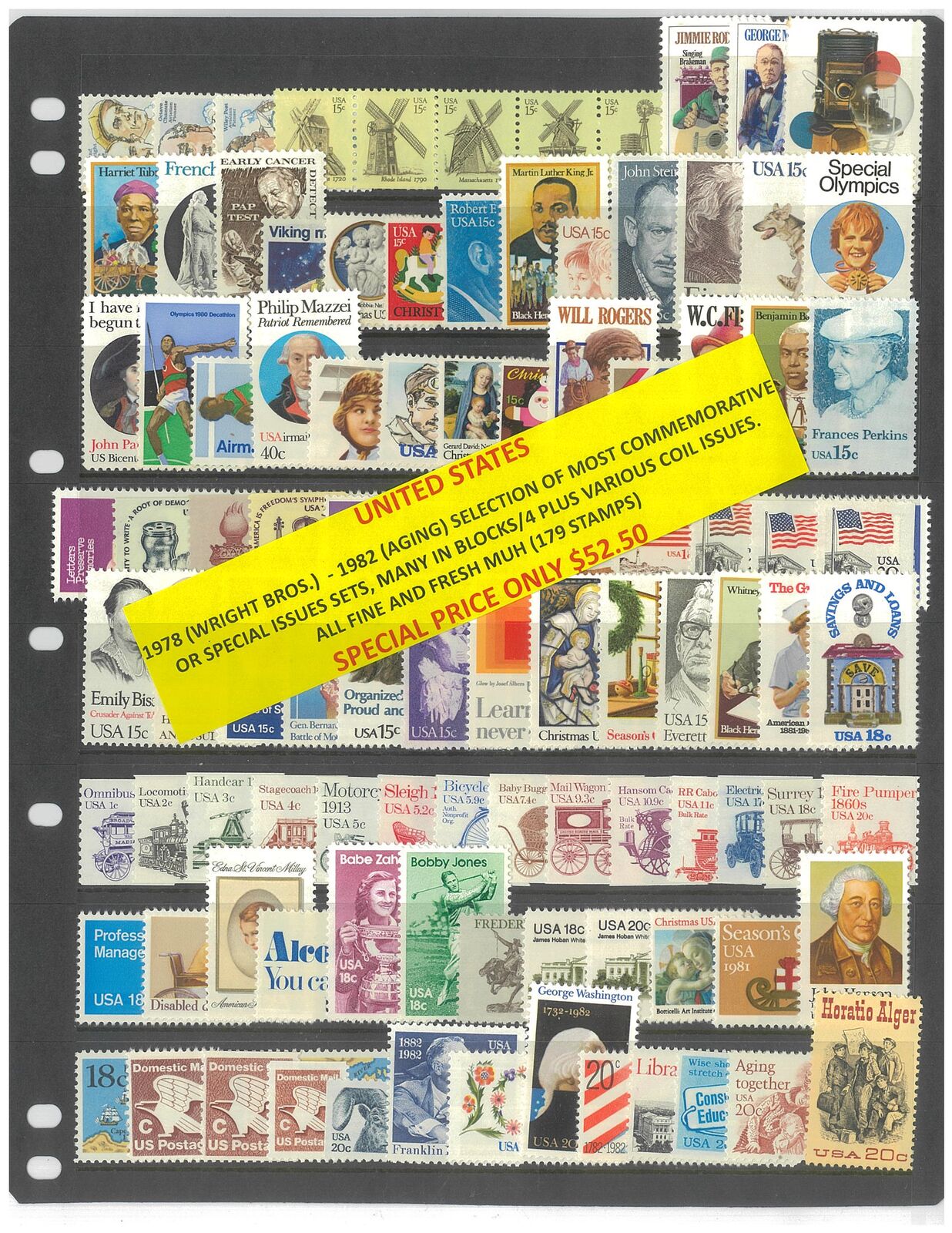 USA 1978 (Wright Bros) - 1982 (Aging) Selection of Commemorative Sets, many in blocks/4 plus various coil issues. 179 Stamps MUH #268