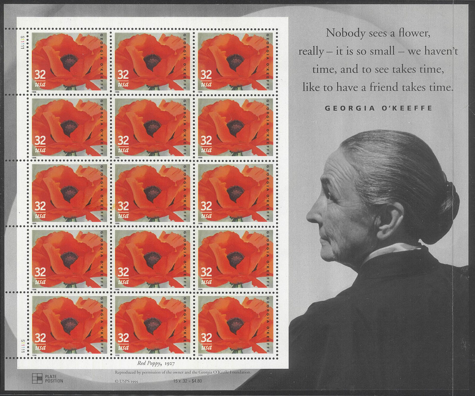 USA 1996 Georgia O'Keeffe 32c Sheetlet/15 Stamps Scott 3069 Mint Unhinged #US31