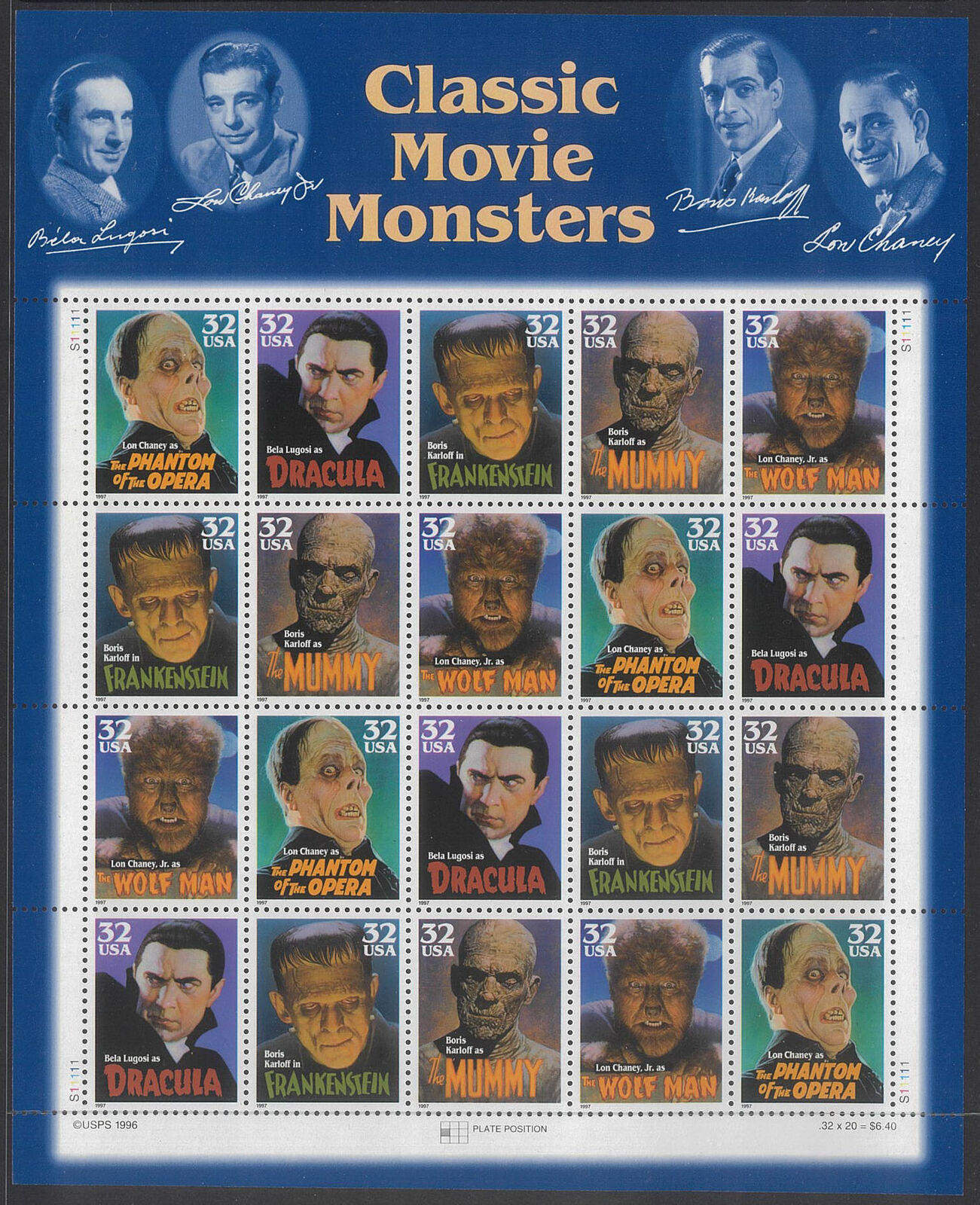 USA 1997 Classic Movie Posters 32c Sheetlet/20 Stamps Scott 3172a MUH #US43