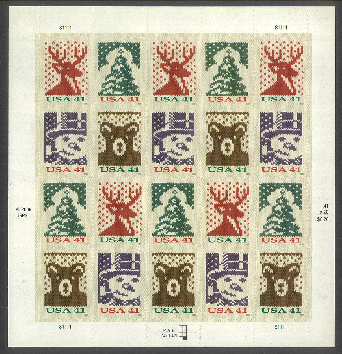 USA 2007 Christmas 41c Booklet Pane/20 Stamps Scott 4210d MUH #US56