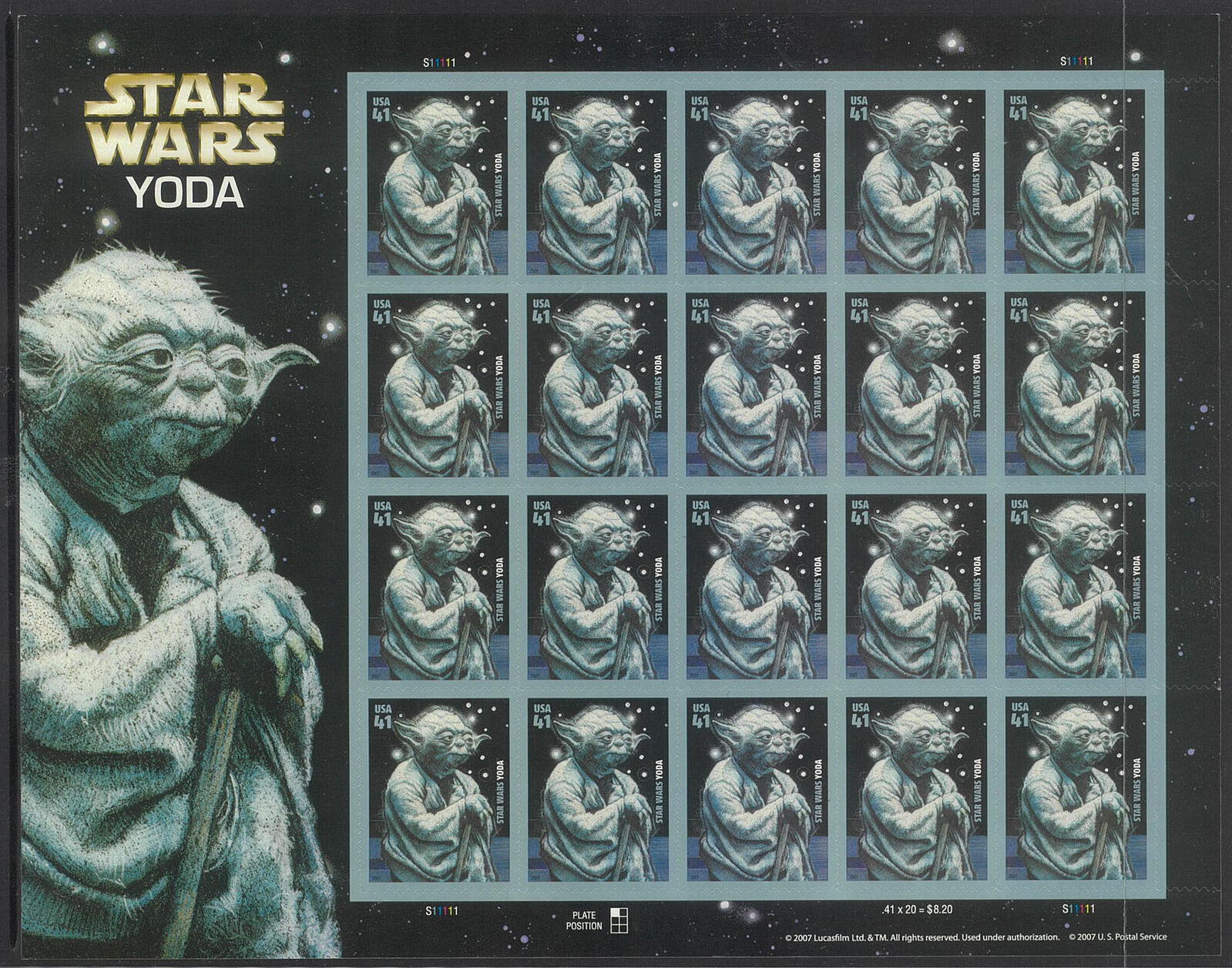 USA 2007 Star Wars Yoda 41c Sheet/20 Stamps Scott 4205 MUH #US55