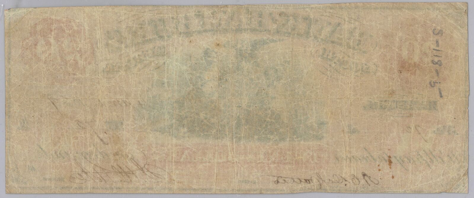 This 1859 $20 Bank of Hamburg note is more than just currency — it is a genuine piece of American financial history, perfect for collectors of obsolete banknotes and Civil War‑era artifacts.