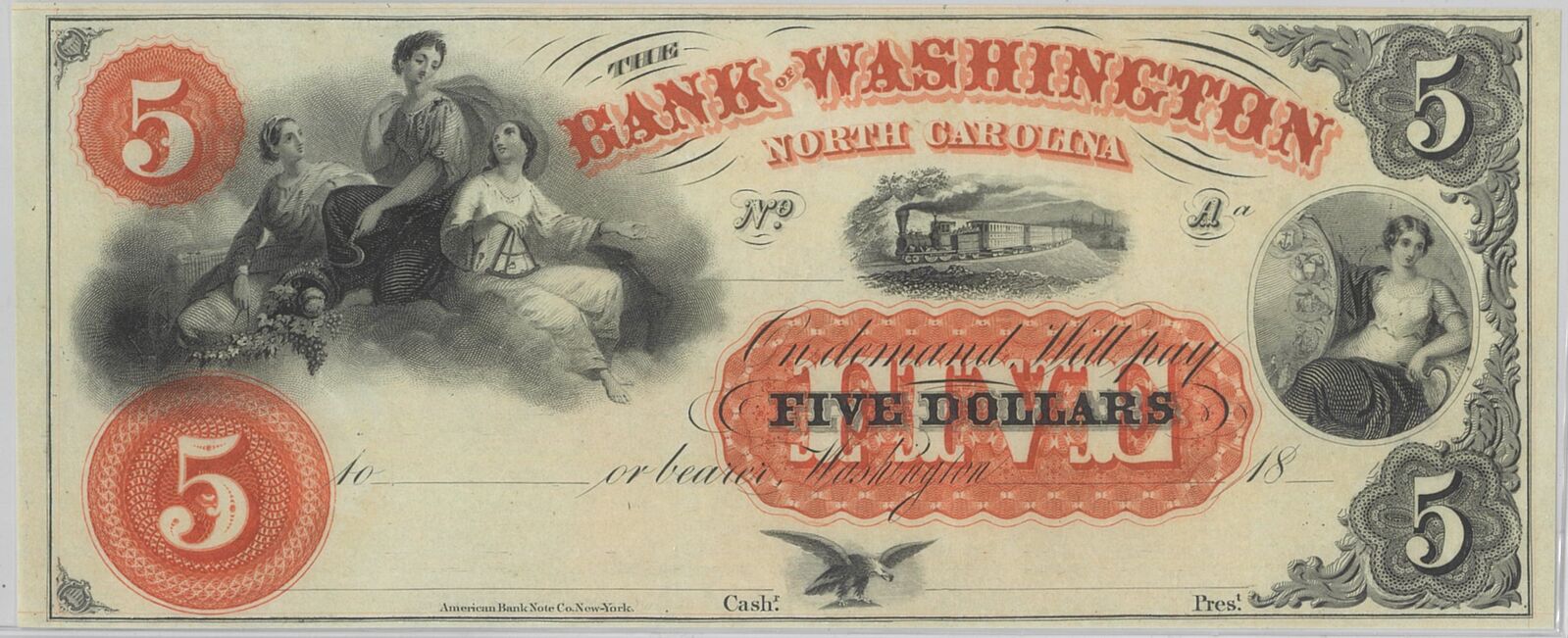 Secure this Bank of Washington $5 note today and preserve a rare relic of 19th‑century Americana in your collection.