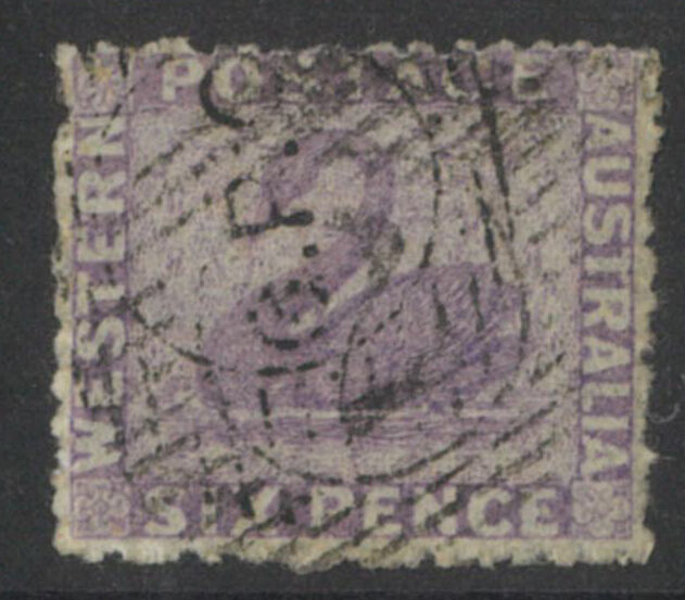 Western Australia 1864 6d Swan Dull Violet No WMK SG51a Used #AUBK